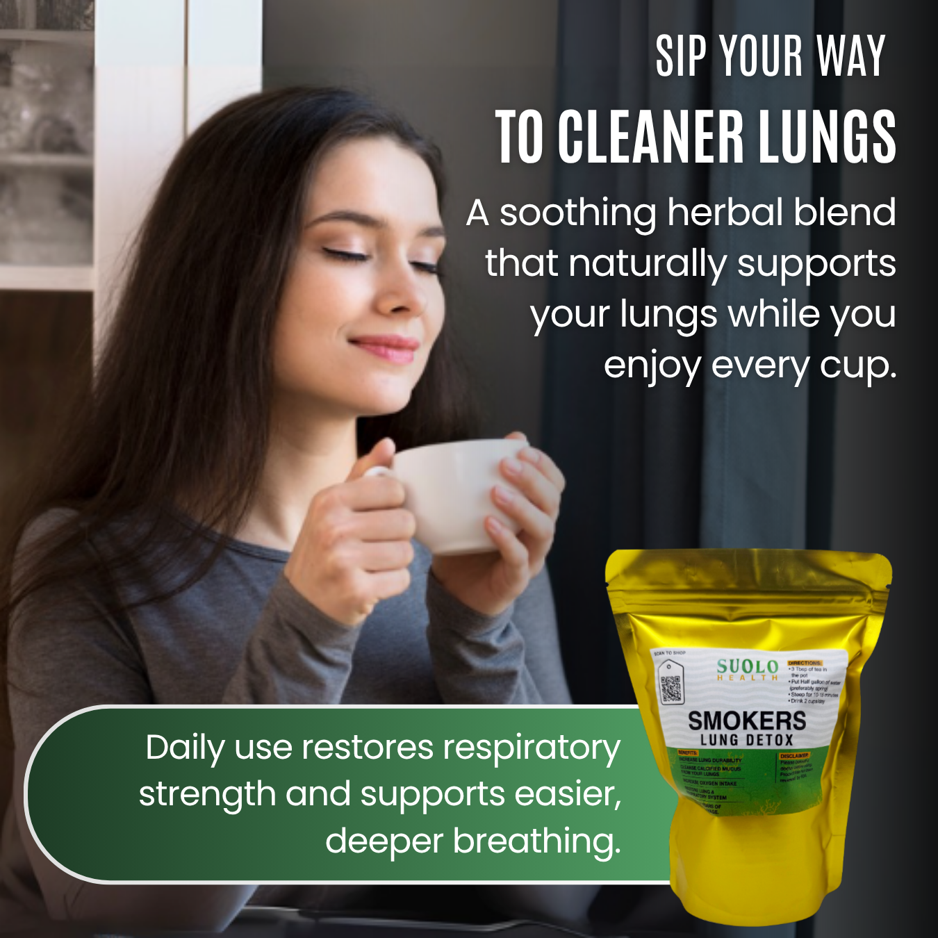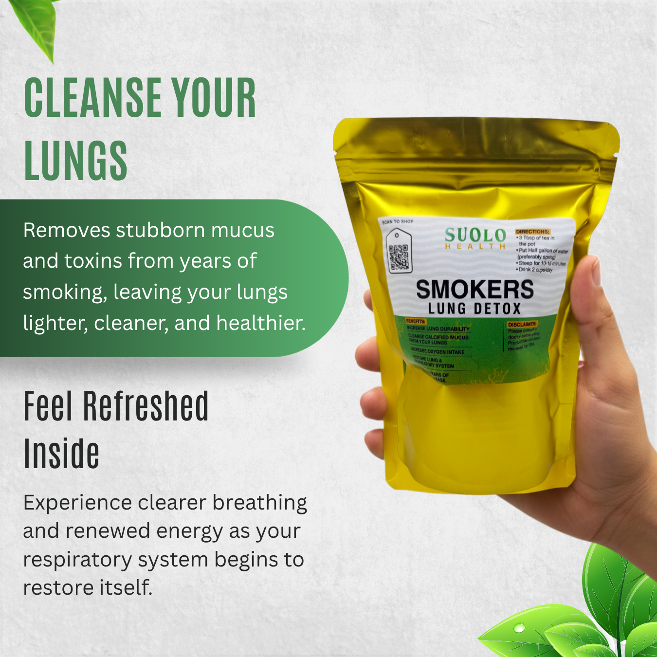 I’ve been smoking for 12 years. I wasn’t even trying to quit, I just wanted something to help my lungs. Bro, after 5 days on this tea I started coughing up mucus I didn’t even know was in me. My breathing feels cleaner, and I don’t wake up wheezing anymore. I can finally take deep breaths without that tight feeling in my chest. This tea is the real deal.